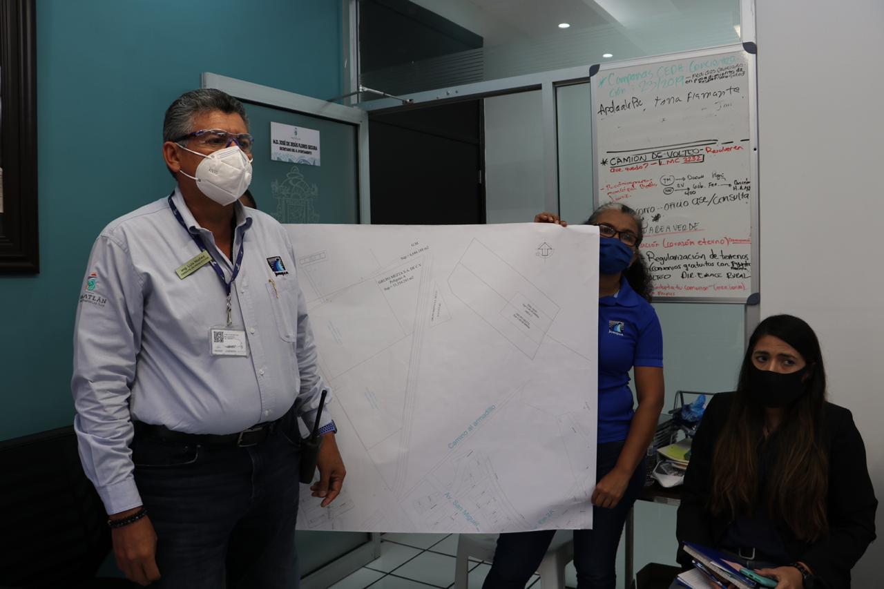 Teniendo como anfitrión de la reunión al Secretario del Ayuntamiento de Mazatlán, José de Jesús Flores Segura, el ingeniero Manuel Gallegos Corral, gerente de la Constructora Casel, refrendó el acuerdo realizado con Jumapam en el mes de junio, donde establecía dotar de 160 mil litros de agua potable diarios a la sección que tiene desabasto.