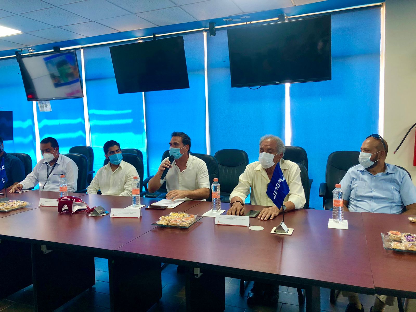 En la conferencia también estuvieron la Ejecutiva de Ventas de Aeromar, Carla Marzano; el director de la Asociación de Hoteles y Empresas Turísticas de Mazatlán, Julio Birrueta; y el Secretario de Desarrollo, Turismo y Pesca de Mazatlán, Luis Terán Tirado, entre otros.