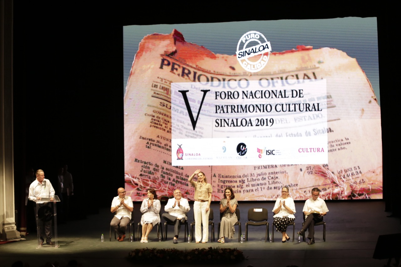 Mazatlán, Sinaloa.- Beatriz Gutiérrez Müller, presidenta de la Coordinación Nacional de la Memoria Histórica y Cultural de México, encabezó en este puerto la ceremonia de inauguración del quinto Foro Nacional del Patrimonio Cultural Sinaloa 2019, «Los archivos, patrimonio y memoria de la Nación».