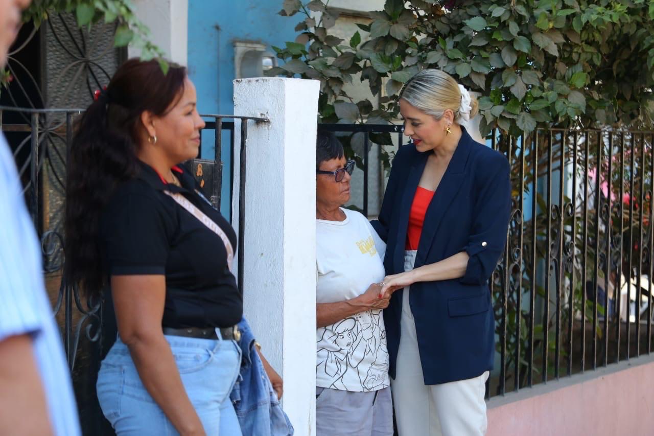 Mazatlán, Sinaloa, 6 de mayo de 2025.- Vecinos de la calle Agustín Melgar, entre avenida Independencia e Insurgentes, de la colonia Benito Juárez, una de las más emblemáticas de la ciudad, recibieron este martes la visita de la Presidenta Estrella Palacios Domínguez, para entregarles un tramo totalmente rehabilitado de la red sanitaria en esa rúa, la cual acabará con el añejo problema de los derramamientos de aguas negras, una obra que por décadas las familias estuvieron solicitando, y que hoy ya es una realidad.