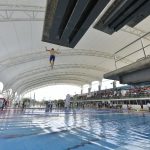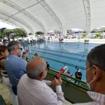 Mazatlán.- El Gobernador Quirino Ordaz Coppel y el Alcalde Luis Guillermo Benitez Torres inauguraron la techumbre de la Alberca Olímpica, que actualmente atiende a mil 200 nadadores entre niñas, niños, jóvenes, adultos mayores y personas con discapacidad, donde además se proyecta la creación de la primera escuela de clavados en el estado.