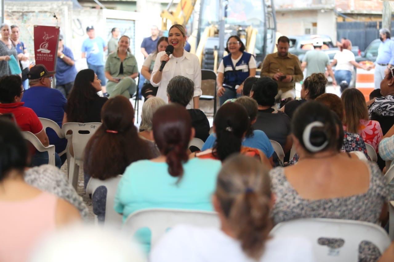 Mazatlán, Sinaloa, 10 de julio de 2025.- Este jueves por la tarde, la Presidenta Municipal, Estrella Palacios Domínguez, arrancó los trabajos de pavimentación que incluirá la rehabilitación total de las redes hidrosanitarias sobre el callejón José Robles, entre las calles Bahía Puerto Viejo y José Robles, en la colonia Casas Económicas, obra que se realizará por el orden de 1 millón 142 mil pesos.