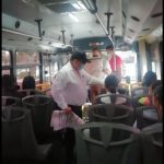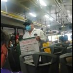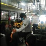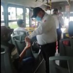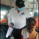 Inspectores de Transportes abordan las unidades para recordar a los usuarios las medidas de protección para evitar contagios del COVID 19.