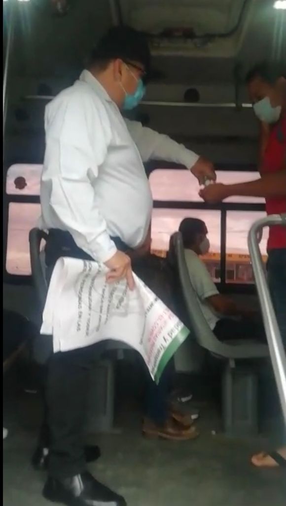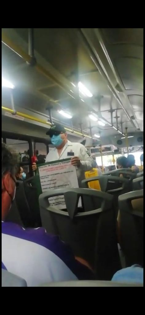 Inspectores de Transportes abordan las unidades para recordar a los usuarios las medidas de protección para evitar contagios del COVID 19.