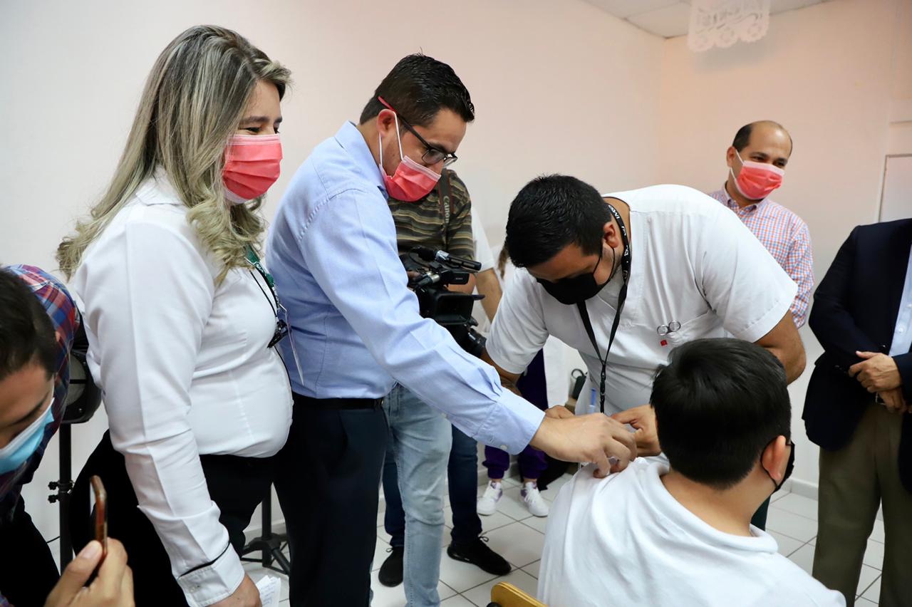 Estuvieron presenciando este evento los integrantes del Comando Estatal de Vacunación como la Dra. Tania Clarisa Medina López, delegada del IMSS en Sinaloa y responsable de la Brigada Correcaminos; el Dr. Marcial Silva Gómez, delegado del ISSSTE; en representación del rector de la UAS, Dr. Jesús Madueña Molina, acudió el Dr. Gerardo Alapizco Castro, secretario general de la UAS; así como el Lic. Jorge Quintero Salazar, subsecretario de Vinculación de la SEP, en representación de la Secretaria de Educación Pública y Cultura, Graciela Domínguez Nava.