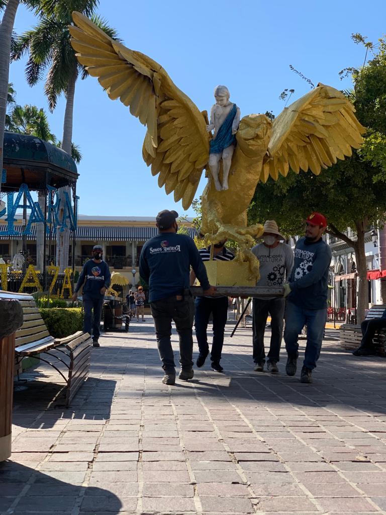 Mazatlán, Sinaloa.- Para conmemorar los 123 años del Carnaval Internacional de Mazatlán y ante la cancelación de esta fiesta, el Gobierno de Mazatlán dirigido por el Alcalde, Químico Luis Guillermo Benitez Torres, a través del Instituto Municipal de Cultura, Turismo y Arte trabaja en la decoración de la Plazuela Machado.