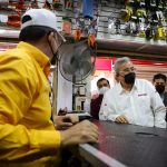 Culiacán, Sinaloa, a 10 de abril de 2021. – La segunda vuelta para recorrer los 18 municipios del estado para el candidato de la alianza de los partidos MORENA-PAS, Rubén Rocha Moya, inició en el mercadito Rafael Buelna, de la capital sinaloense, donde dijo que entre las solicitudes que ha recibido es rescatar los espacios públicos, entre ellos los mercados.