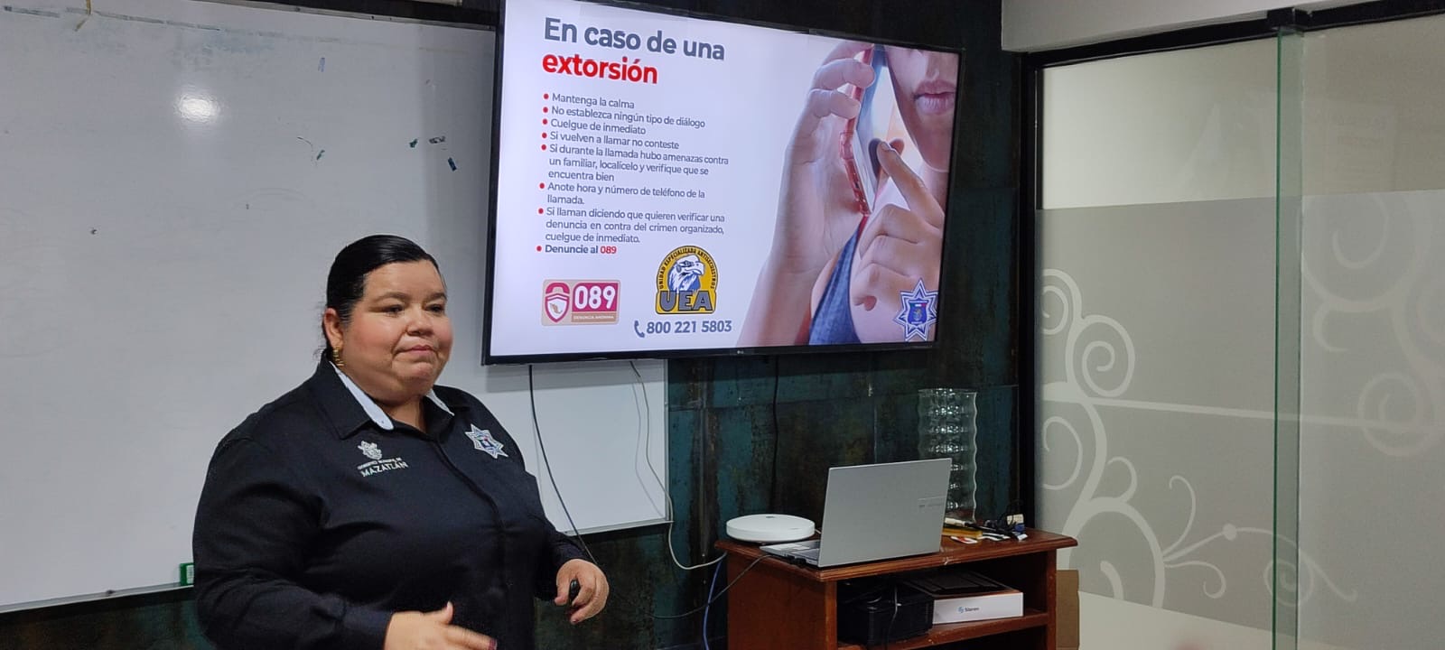 Mazatlán, Sinaloa, 27 de octubre de 2025.— La Secretaría de Seguridad Pública Municipal, a través del Departamento de Programas Preventivos, puso en marcha una campaña de difusión para informar a la ciudadanía sobre los distintos métodos de extorsión y las medidas que deben adoptar para evitar ser víctimas de este delito.