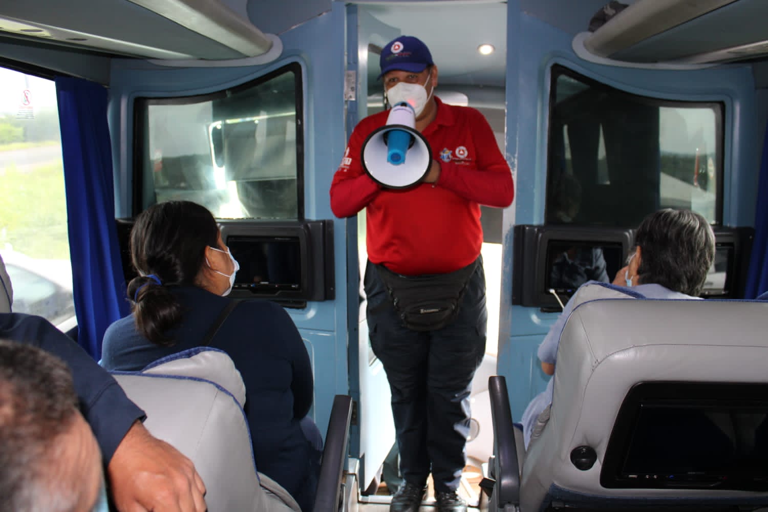 Eloy Ruiz Gastélum, titular de PC explicó que fundamentalmente se está recibiendo a los visitantes a bordo de autobuses, a quienes se les dan a conocer las medidas que deben cumplir durante su estancia en la ciudad, y se desinfecta el área de equipaje.