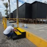 Mazatlán, Sinaloa, 02 de Febrero de 2023. Avanza la instalación de baños, rejas y la introducción de cableado para abastecer de energía eléctrica a los escenarios y a comerciantes que venderán sus productos en Olas Altas y Paseo Claussen durante las fiestas del Carnaval Internacional Mazatlán 2023.