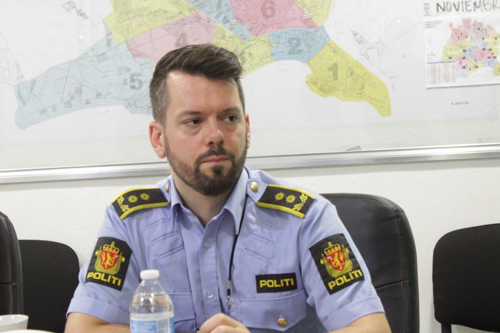“Estoy muy impresionado. Algunos de los sistemas que ustedes tienen son muy buenos y más adelante de Noruega. Este sistema de vigilancia con las cámaras es muy bueno, y también el sistema que tienen para entrenar a los operativos me parece muy bueno. Estoy muy feliz de ver todo el trabajo que hacen aquí en el departamento de la Policia y es un honor estar con ustedes. Espero que no sea la última vez que esté aquí”, dijo que Procurador noruego.