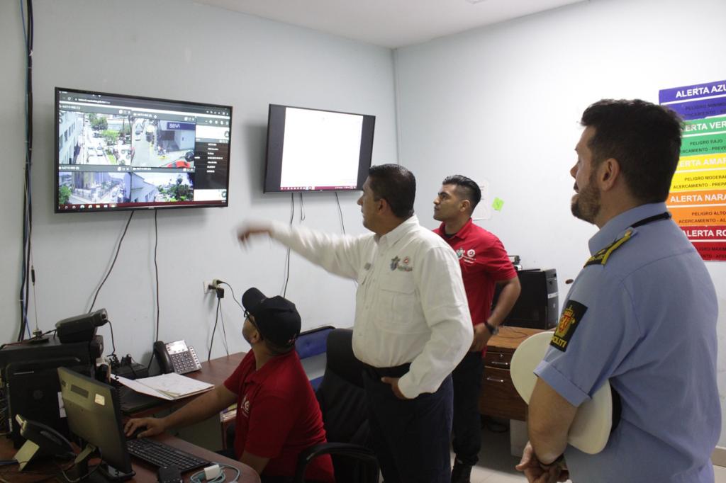 Previo a un recorrido por las instalaciones del Centro de Seguridad Ciudadana, el Sub inspector Ramírez Suárez dio la bienvenida al funcionario y le explicó el trabajo preventivo y de vigilancia que realiza la corporación policíaca municipal.