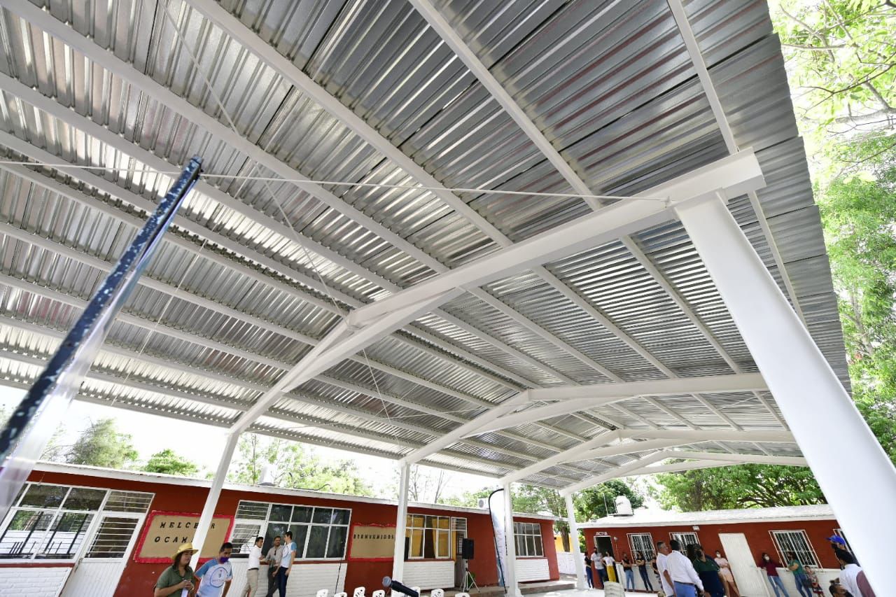 En La Cofradía se construyó una techumbre sobre la plaza cívica de la Primaria Melchor Ocampo, con una inversión de un millón 364 mil 818 pesos, mientras que en El Roble se hizo la pavimentación de la calle Juan Escutia, con una inversión de un millón 405 mil 936 pesos.