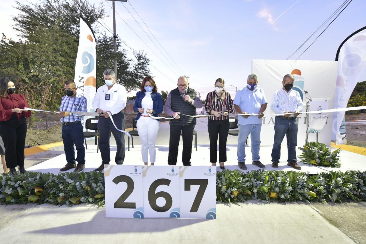 Mazatlán.- El Alcalde Luis Guillermo Benitez Torres entregó la tarde de este viernes cinco nuevas obras en tres colonias del puerto, con una inversión de 2 millones 171 mil pesos, trabajos que vienen a mejorar la calidad de vida de los beneficiarios.