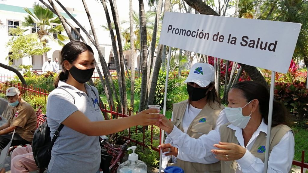 El módulo, que ya tiene dos semanas brindando hidratación a las personas que lo pidan así como su sobre de Vida Suero Oral, además de brindarle recomendaciones para evitar algún golpe de calor y se les habla del dengue.