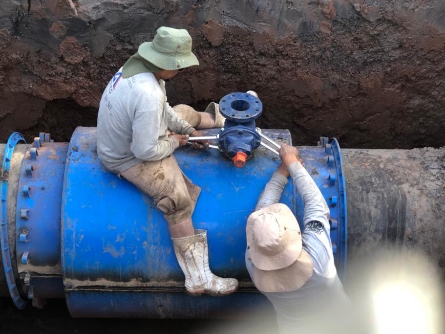 Se colocaron una junta bipartida para corregir una fuga y una nueva válvula en la red que abastece a los fraccionamientos de Ciudad Santa Fe