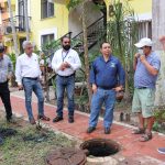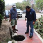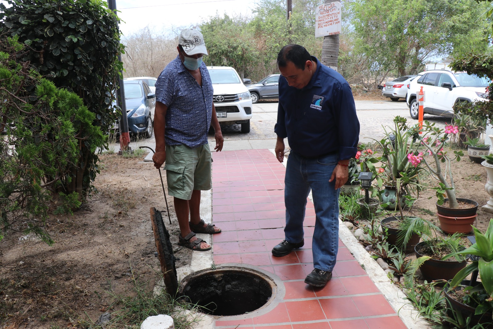 A temprana hora, personal de la Gerencia de Operaciones llegó con el camión vactor para desazolvar dos pozos de visita y a media mañana ingenieros de la Gerencia de Construcción hicieron el registro de los niveles y el levantamiento topográfico de la red de alcantarillado existente, para elaborar un proyecto de obra.