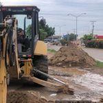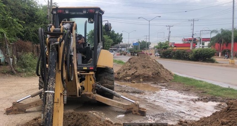 Se trata de la línea de presión que va del Rebombeo Flores Magón al Tanque 5000, que va sobre la calle de terracería que va paralela a la Avenida Manuel J. Clouthier, donde ayer por la tarde se detectó el escurrimiento de agua potable.