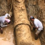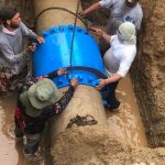 Mazatlán, Sinaloa a 20 de octubre de 2023.- Sin bajar en lo más mínimo la producción de agua potable ni cerrar válvulas de la red de distribución, esta mañana la Gerencia de Operaciones de Jumapam reparó una fuga de agua detectada en una tubería de 24 pulgadas de diámetro, a la altura de la Colonia Flores Magón.