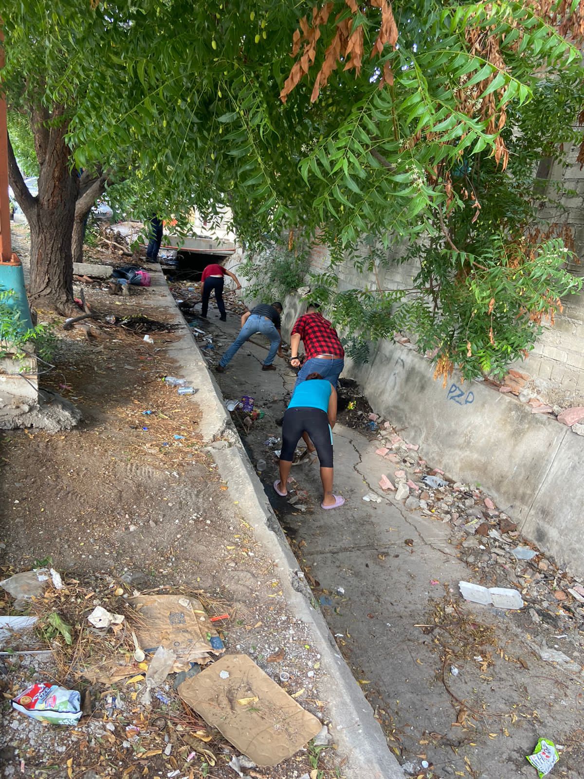 Mazatlán, SIN.- Gobierno Municipal, a través del personal adscrito a la Dirección de Evaluación y Zona Rural en coordinación con la Sindicatura de Villa Unión y vecinos del lugar, realizaron este sábado a temprana hora, trabajos de limpieza del canal “La Pizarra”, entre las calles 21 de Marzo y Arroyo de las Salvias, en la colonia Margarita Maza de Juárez, a petición del Síndico de la comunidad, Leopoldo Guerrero.