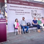 Mazatlán, Sinaloa, 20 de junio de 2023.- Generar espacios de diálogo entre padres de familia y autoridades educativas es un área de oportunidad para transformar y construir entornos protectores desde las familias y escuelas, por ello, esta mañana autoridades estatales y municipales sostuvieron un encuentro con madres, padres de familia y tutores para compartir la estrategia implementada en las aulas de educación básica para prevenir adicciones “Si te drogas, te dañas”.