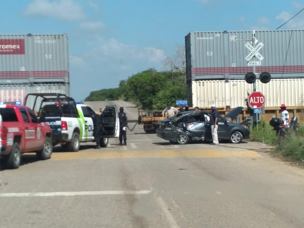 Mazatlán, Sinaloa.- A pesar de que hay señalamientos de advertencia y topes, el secretario del Ayuntamiento, José de Jesús Flores Segura, lamentó que una mujer haya querido ganarle el paso al tren, resultando con daños materiales su vehículo.