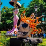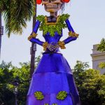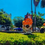 Mazatlán, Sinaloa, 29 de octubre de 2025.- La Plazuela Machado se transformó en una ofrenda gigante con la instalación de esculturas del Centro Municipal de las Artes y la instalación de la imponente Catrina creada por Luis Antonio Ríos “Momo”.