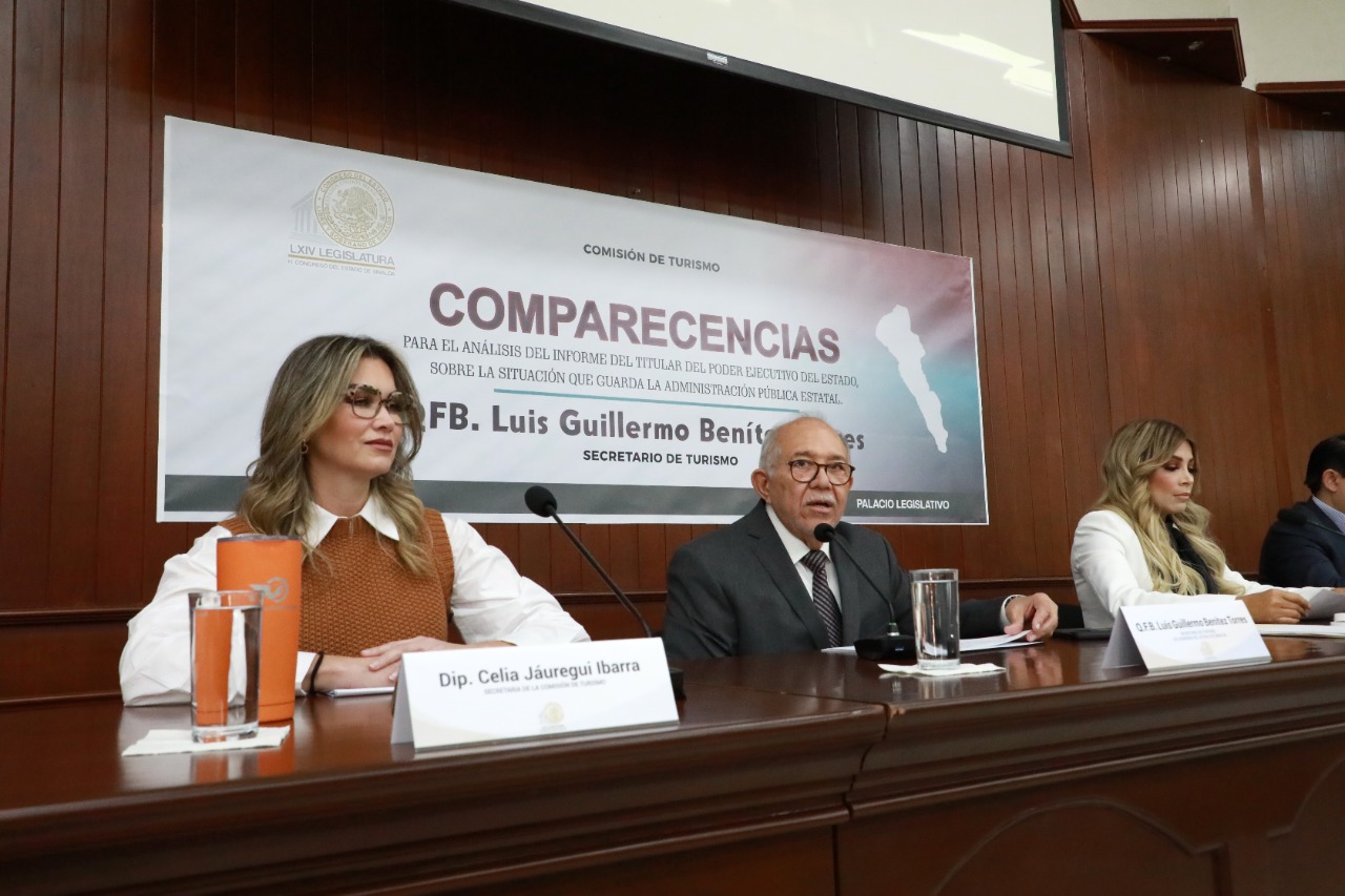 Culiacán, Sin., enero 25 de 2023.- El Turismo es un gran generador de empleos, oportunidades y desarrollo para una gran parte de la población, y nuestro Gobierno busca que este crecimiento se traduzca en bienestar para los sinaloenses, destacó el Secretario de Turismo, Luis Guillermo Benitez Torres, al comparecer ante la 64 Legislatura del Congreso del Estado, con motivo de la Glosa del primer informe del Gobernador del Estado, Rubén Rocha Moya.
