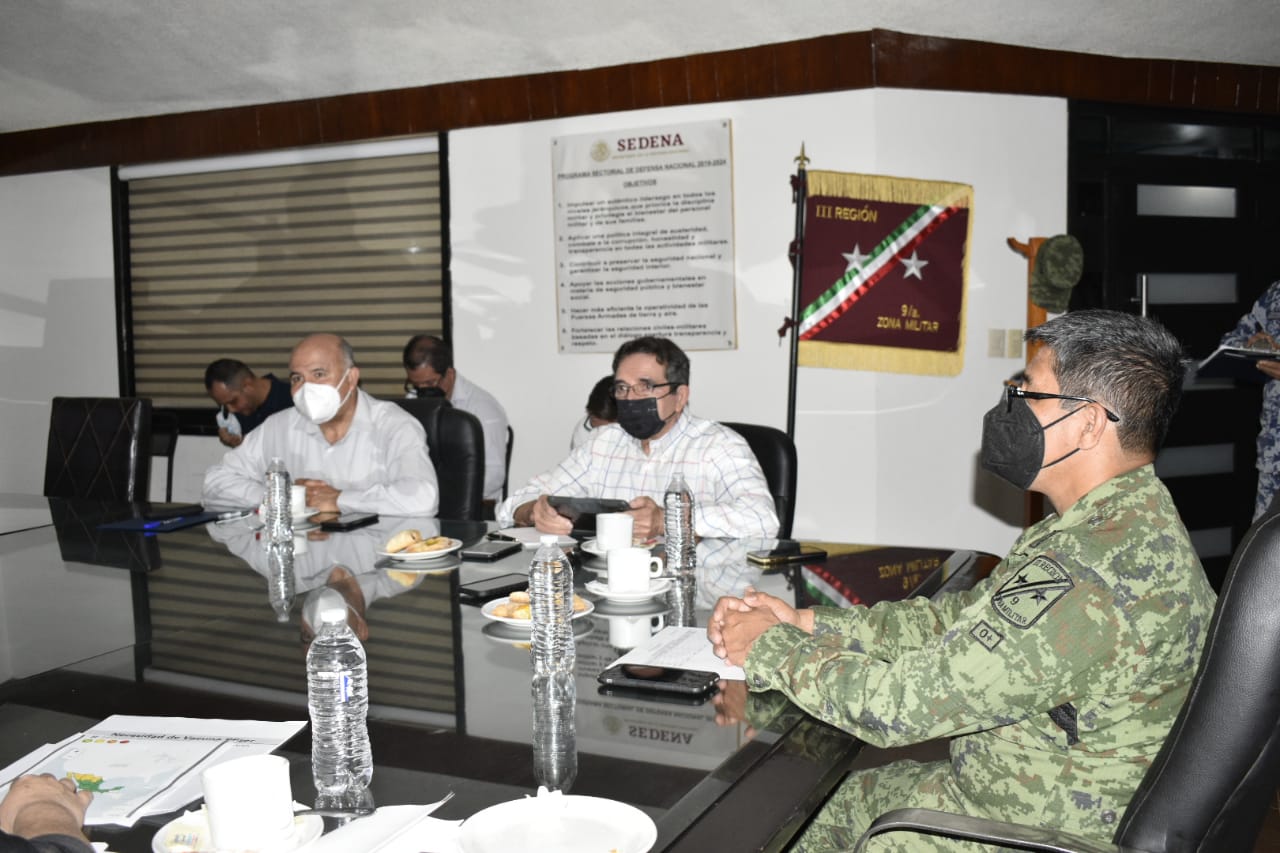 En la reunión, también estuvieron presentes los integrantes del Comando Estatal de Vacunación, en representación del General Héctor Ávila Alcocer Comandante de la Novena Zona Militar, estuvo el General Estudillo; el Delegado de Bienestar, Arq. Juan de Dios Gámez; Delegada del IMSS, Dra. Tania Clarisa Medina López; Dr. Gerardo Alapizco Castro en representación del Rector de la UAS Jesús Madueña Molina.