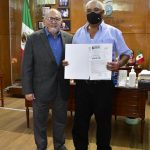 El Alcalde de Mazatlán le entrega un permiso gratuito de vendedor ambulante al hombre que salvó a tres niños de un incendio en Santa Fe