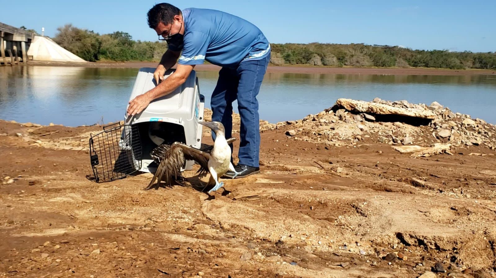Mazatlán, Sin.- Dos de los cuatro pájaros Bobo de Patas Azules, resguardados por Acuario Mazatlán luego de la llegada del Huracán Pamela, fueron liberados este sábado por el personal médico.