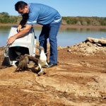 La liberación se realizó junto con tres tortugas una casquito y dos pintadas, en un estero ubicado al norte de la ciudad.