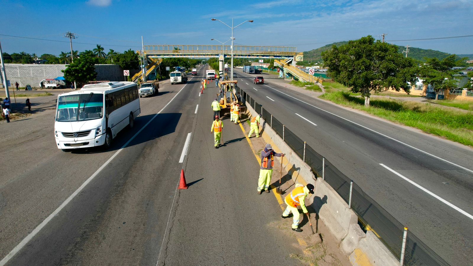 Mazatlán, Sinaloa, 21 de noviembre de 2023.- Un arduo trabajo de limpieza se realiza en la entrada sur de la ciudad, por parte de la Dirección de Servicios Públicos.
