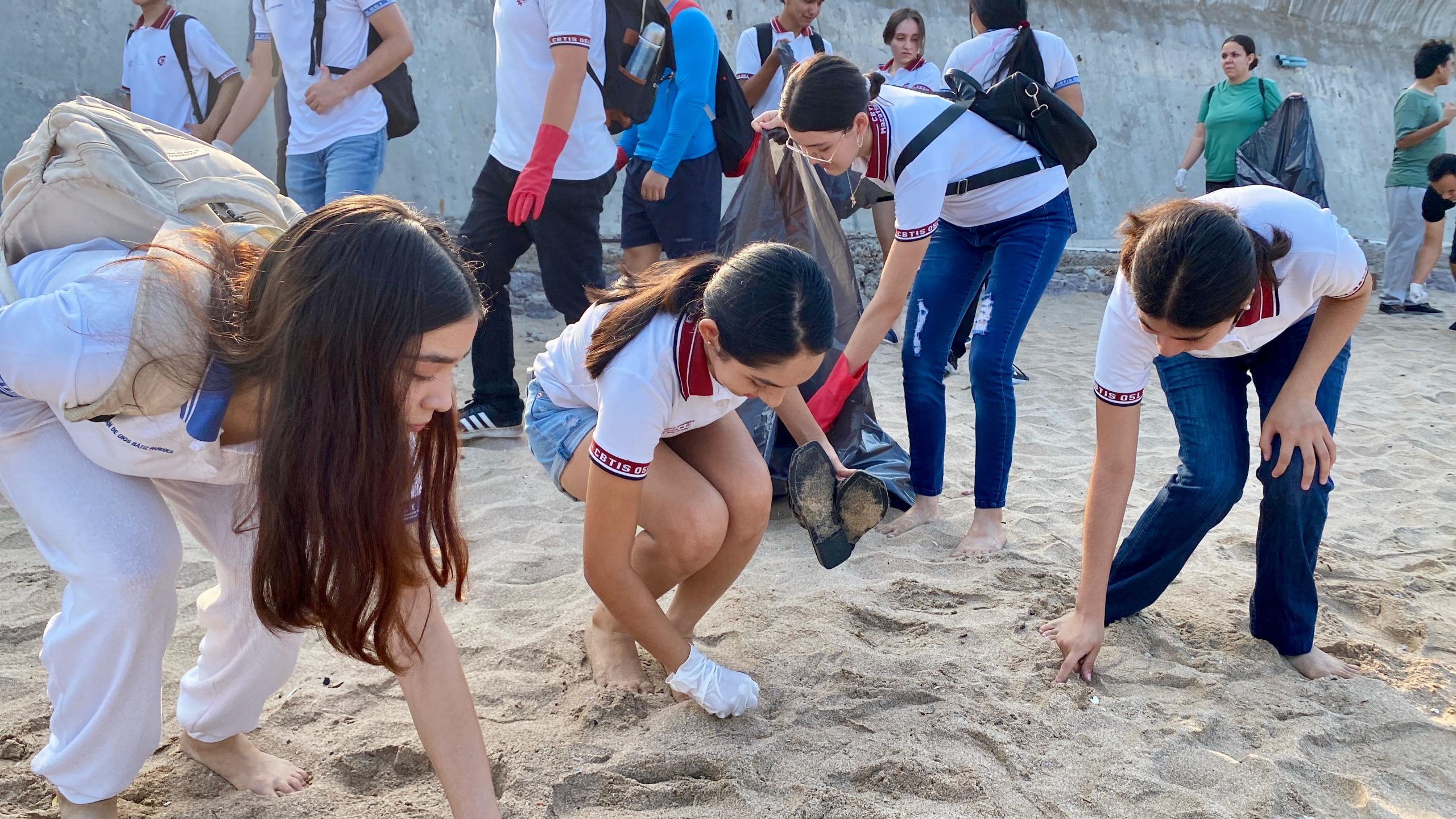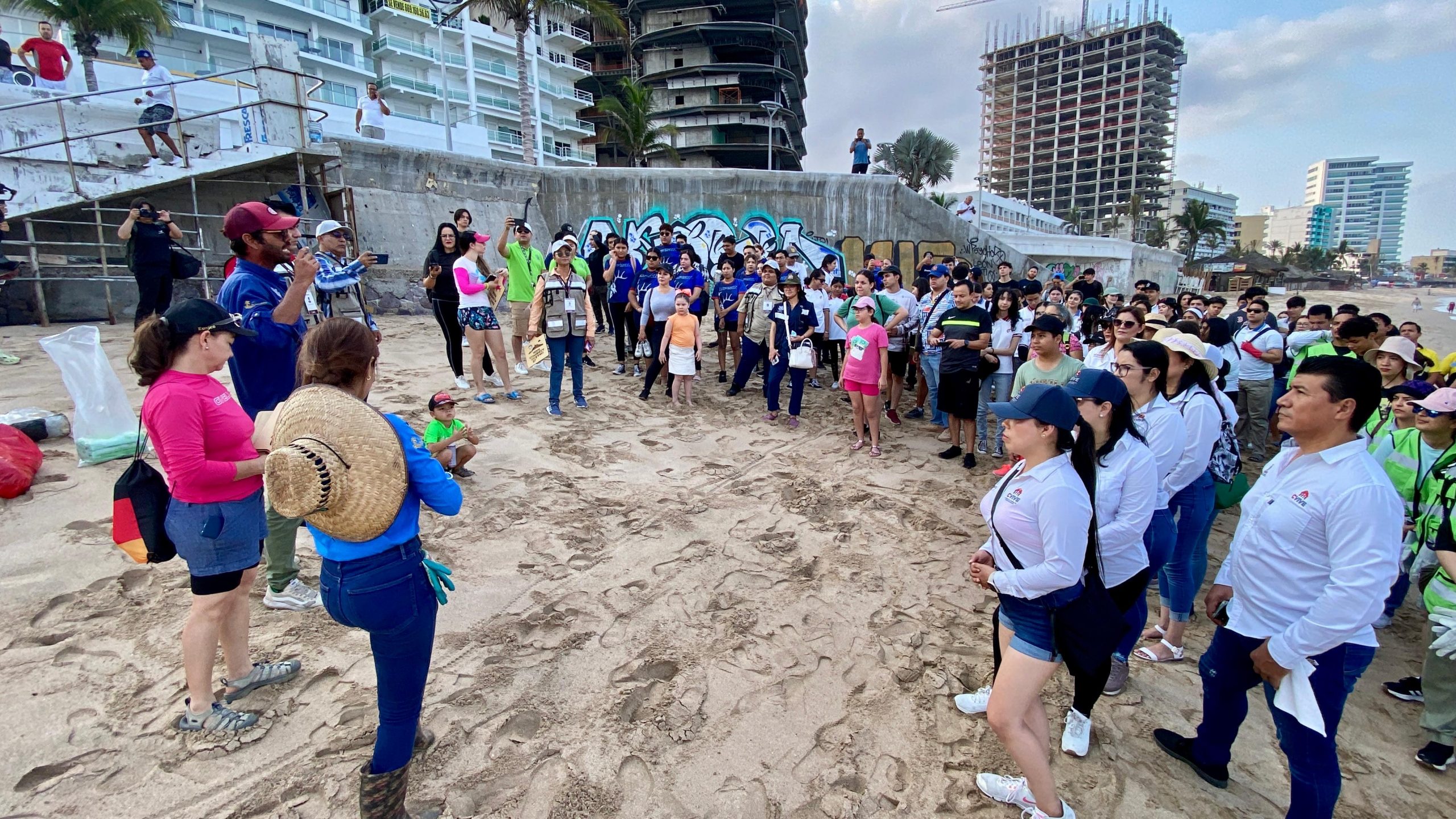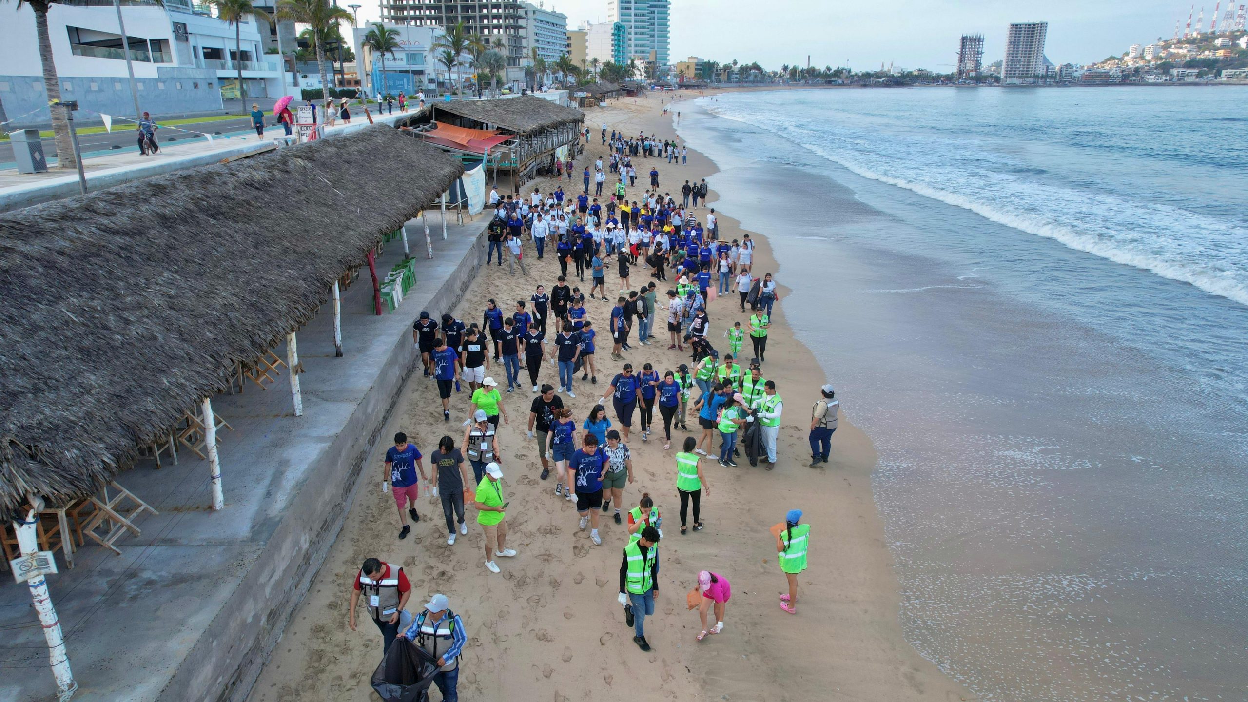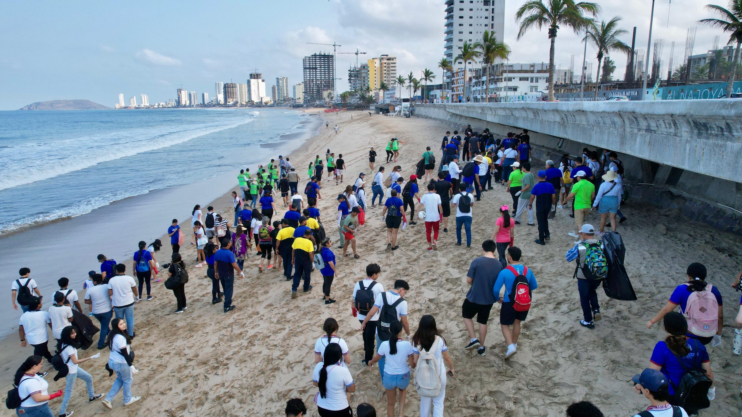 Mazatlán, Sinaloa, 8 de junio de 2024.- De manera simultánea Operadora y Administradora de Playa junto a Ecología y Medio Ambiente, y la Secretaría de Bienestar y Desarrollo Sustentable, llevaron a cabo una limpieza de playa con alrededor de 700 voluntarios en el que participaron empresas, instituciones educativas y sociedad; mientras que en la parte del malecón junto a las alcantarillas se realizó la pinta de letreros con mensajes de conciencia sobre el cuidado de los océanos.