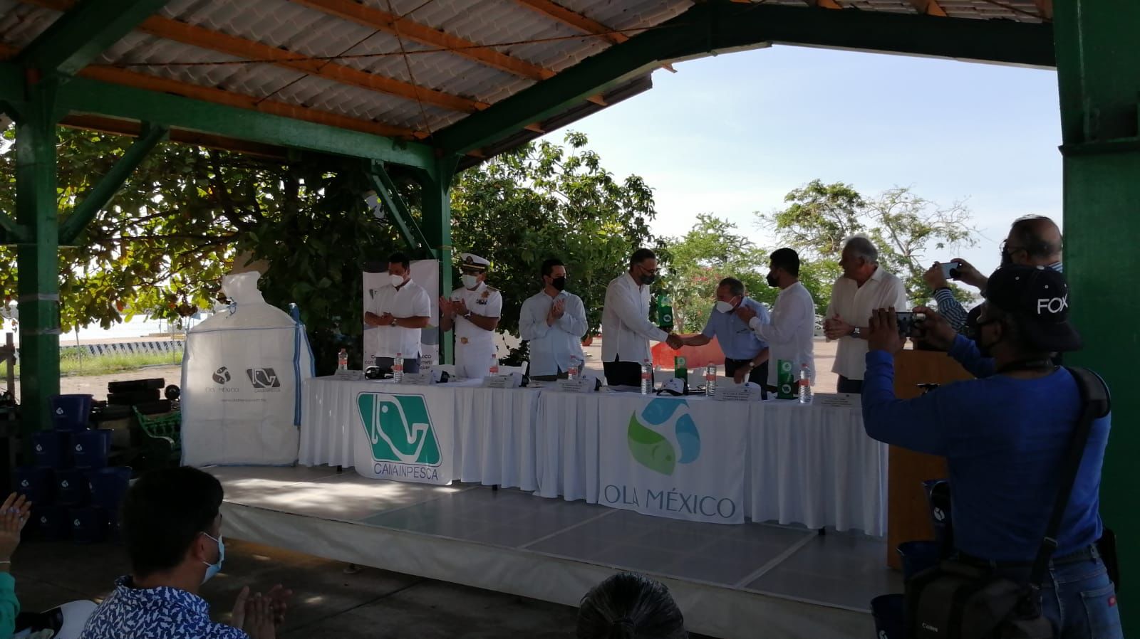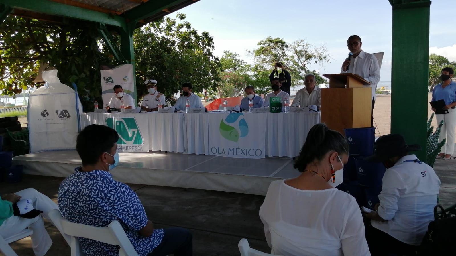 Correspondió al licenciado Alonso Coronado, Coordinador General de Operación y Estrategia Institucional de la Conapesca, dar el banderazo del arranque de la temporada pesquera y del programa de recolección de desechos plásticos de la flota camaronera.