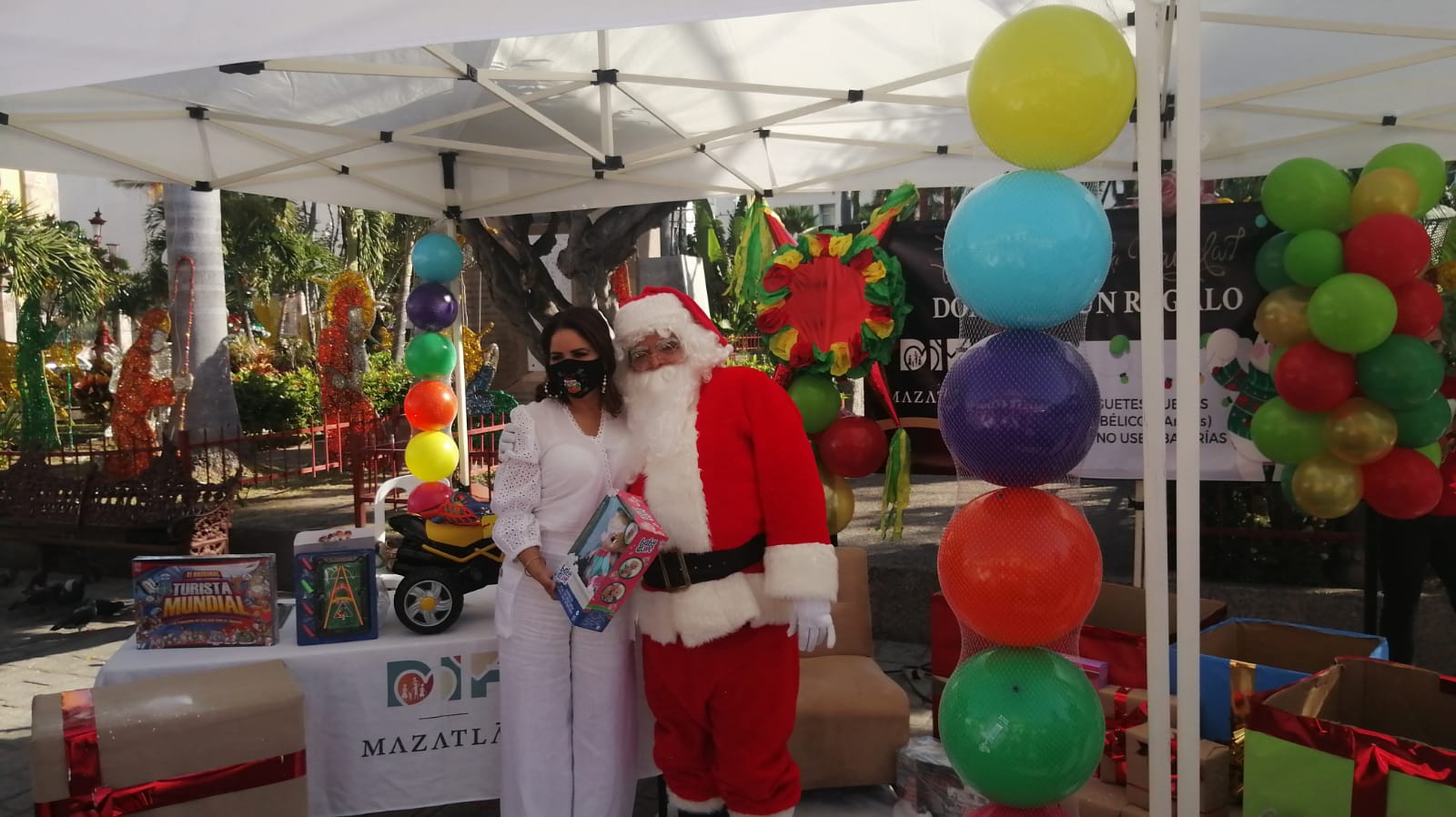 Mazatlán, Sinaloa.- Al poner en marcha la campaña en la explanada de la Plazuela República, la presidenta del Sistema DIF municipal, Gabriela Peña Chico, llamó a la ciudadanía a regalar sonrisas a las niñas y niños del municipio por medio de un juguete.