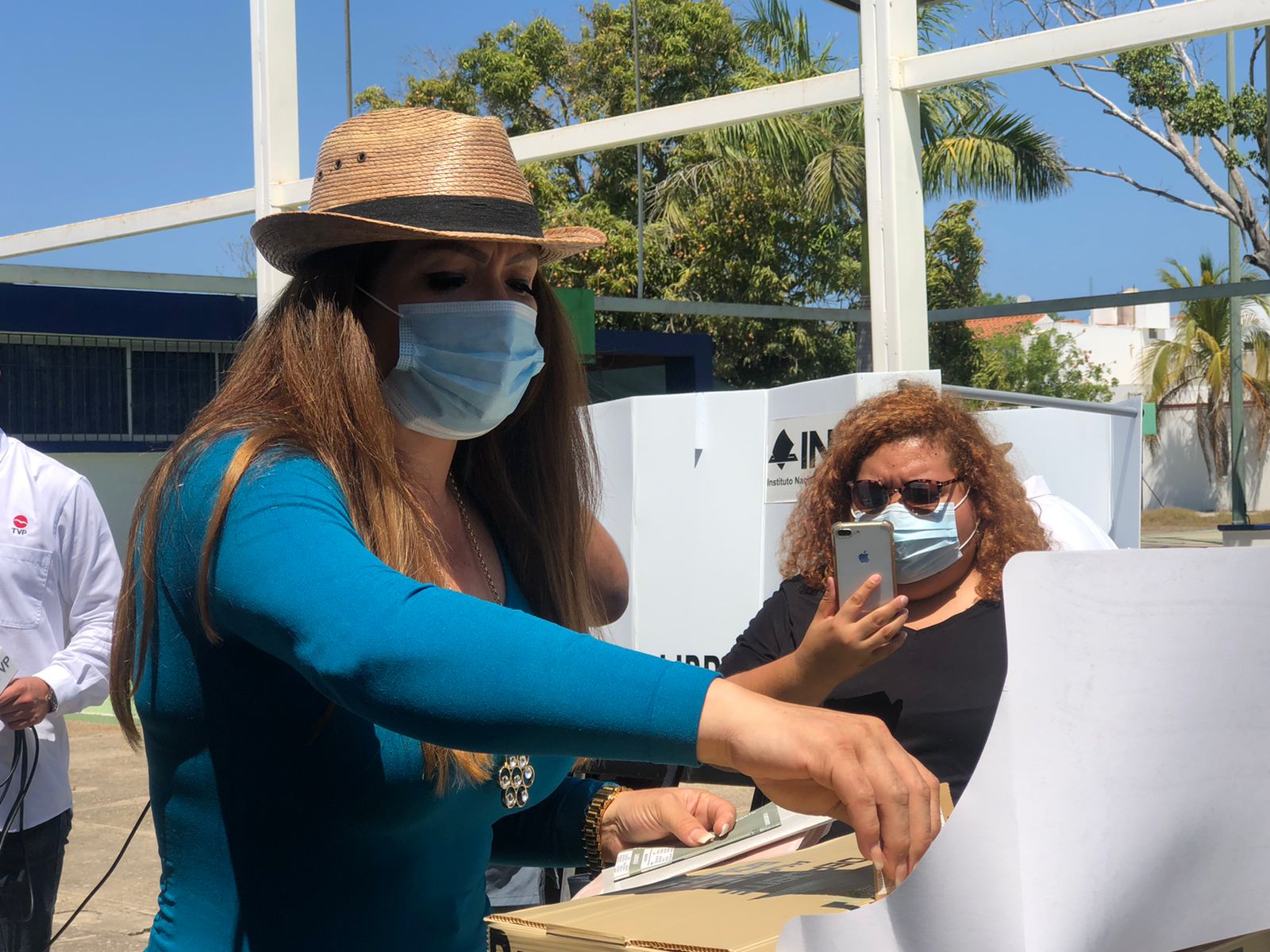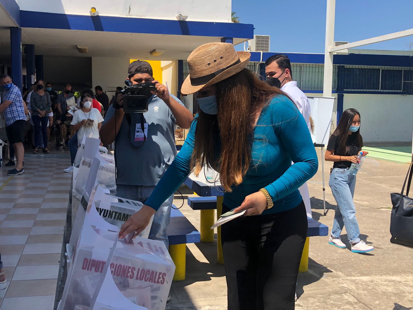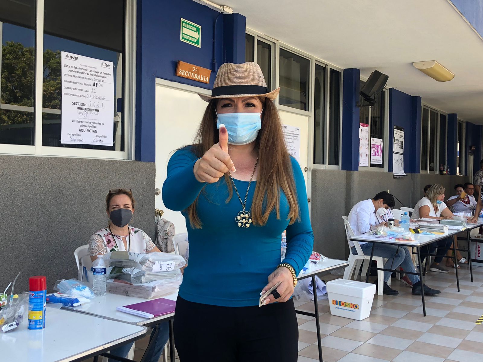 La candidata del Partido Encuentro Solidario a la presidencia municipal de Mazatlán, emitió su voto en la casilla, la 2667