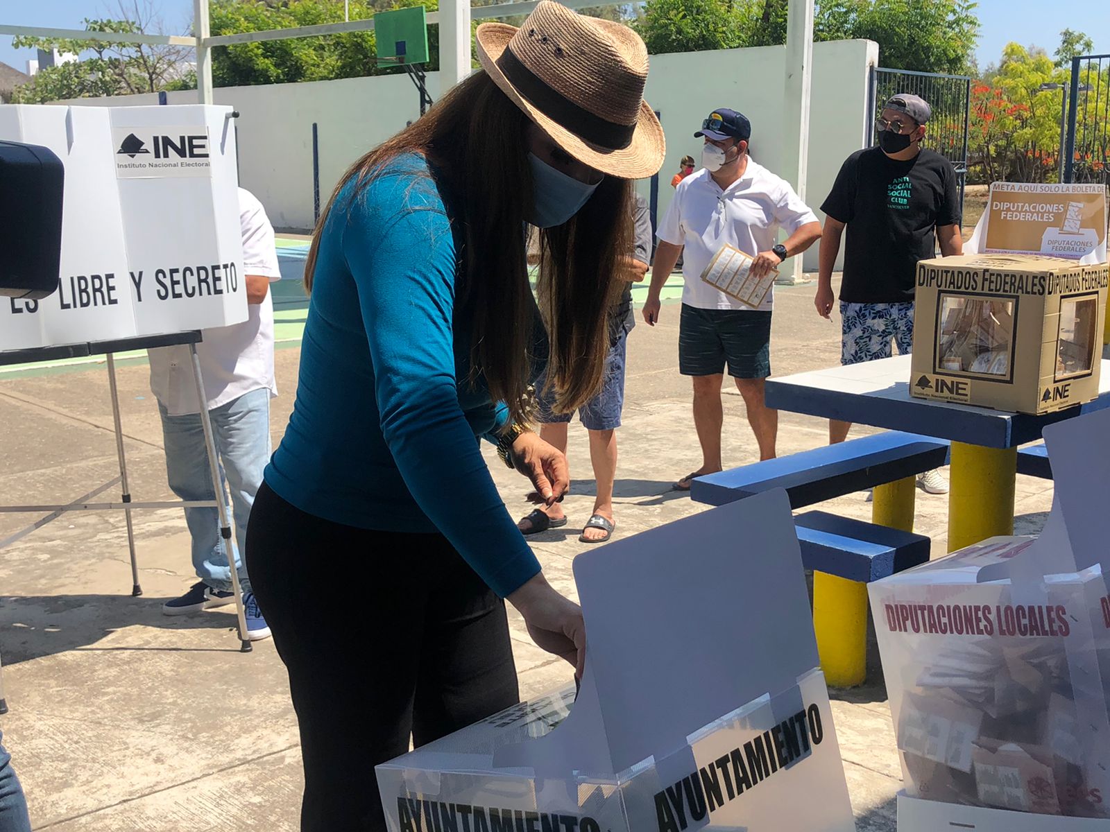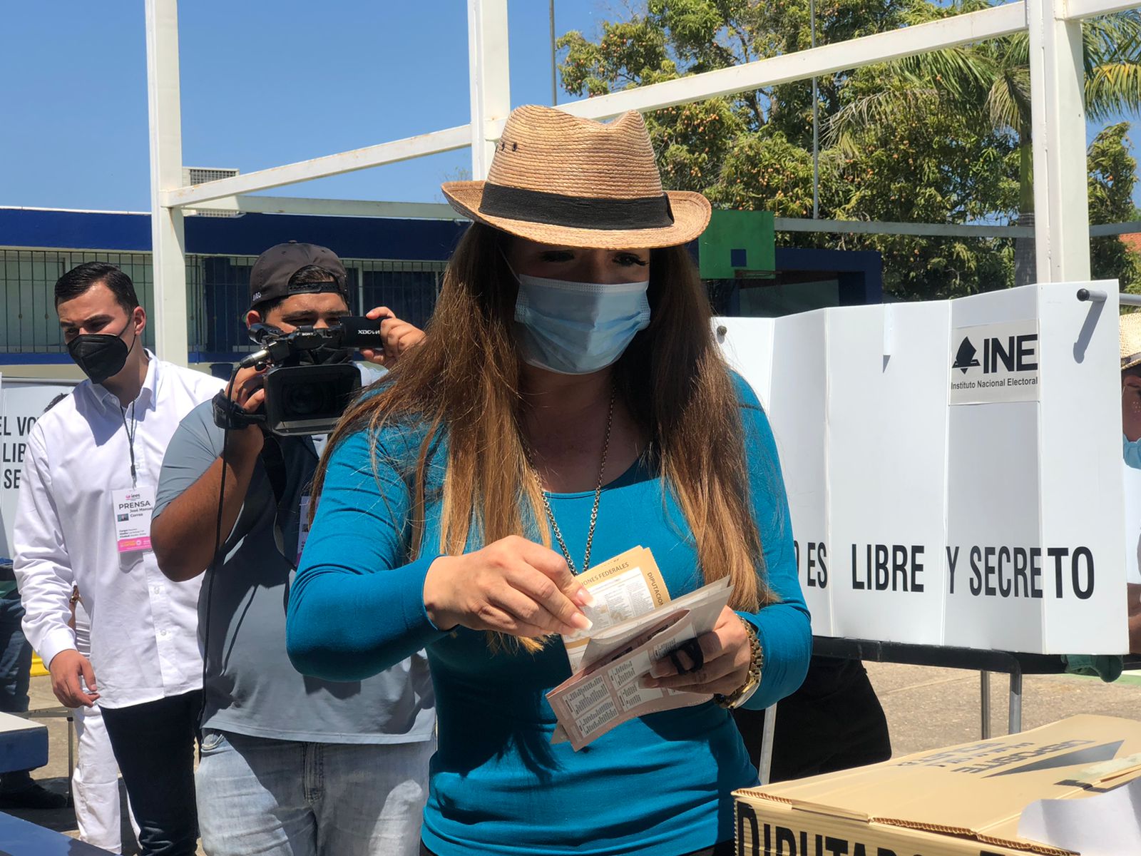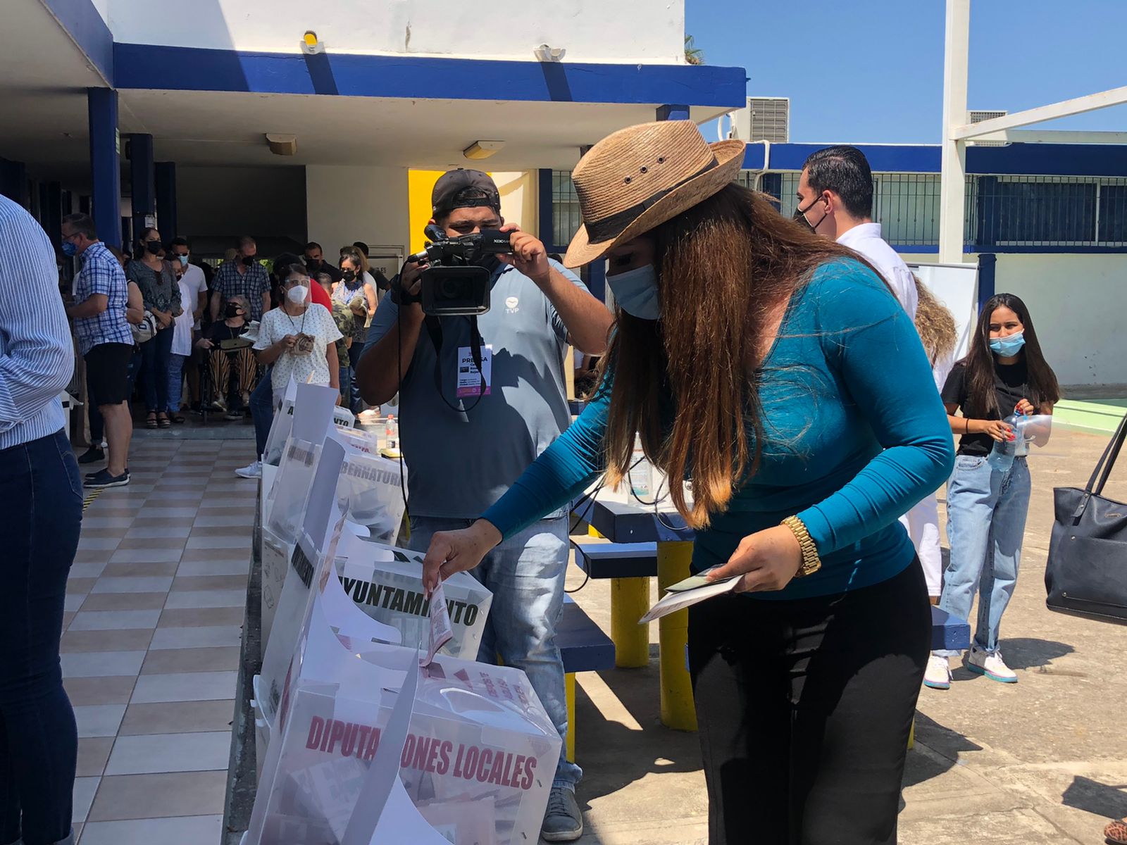 La candidata del Partido Encuentro Solidario a la presidencia municipal de Mazatlán, emitió su voto en la casilla, la 2667