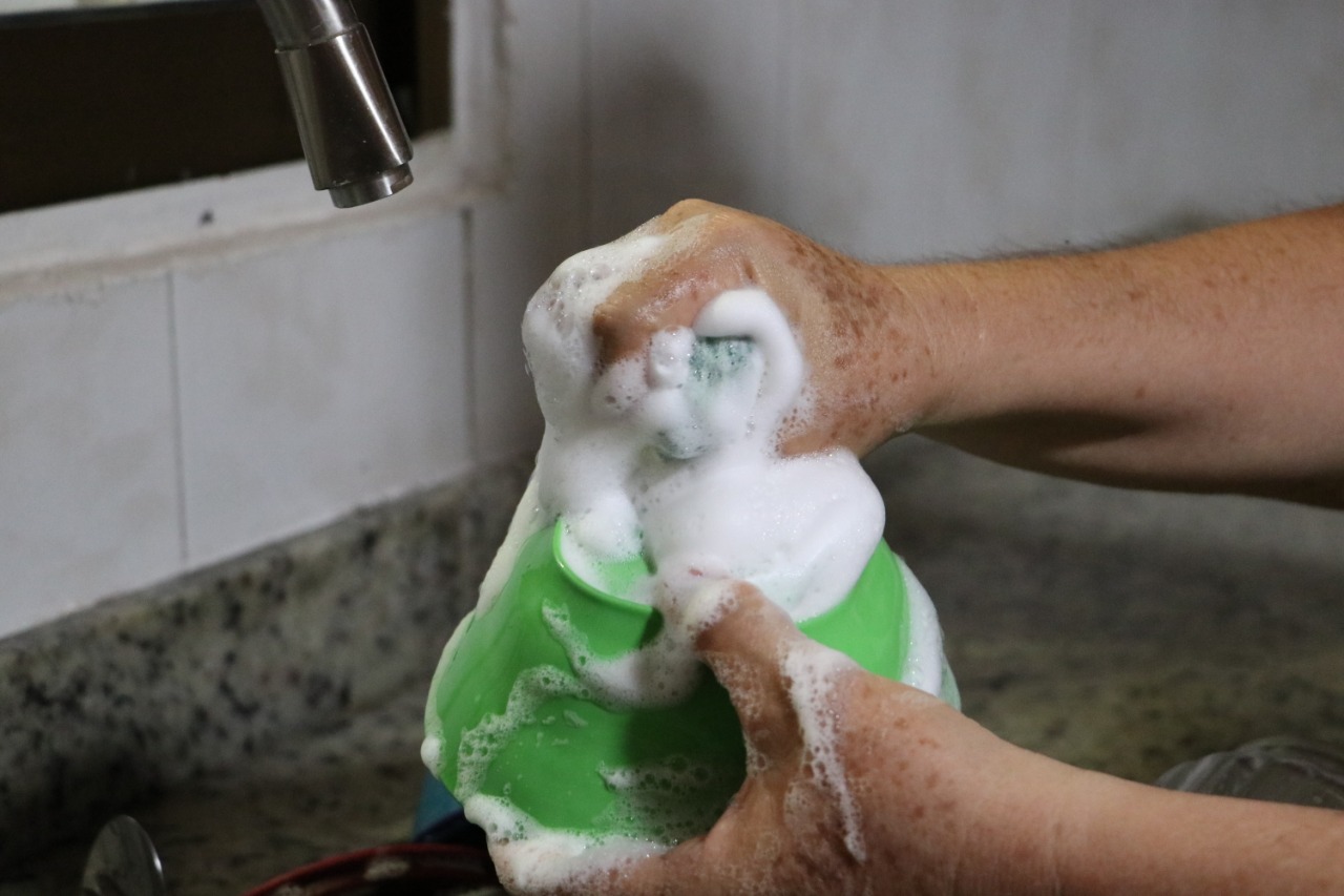 3. Cierra el grifo mientras enjabonas los platos y abrirlo sólo para enjuagar. Lo ideal es lavarlos en un recipiente.