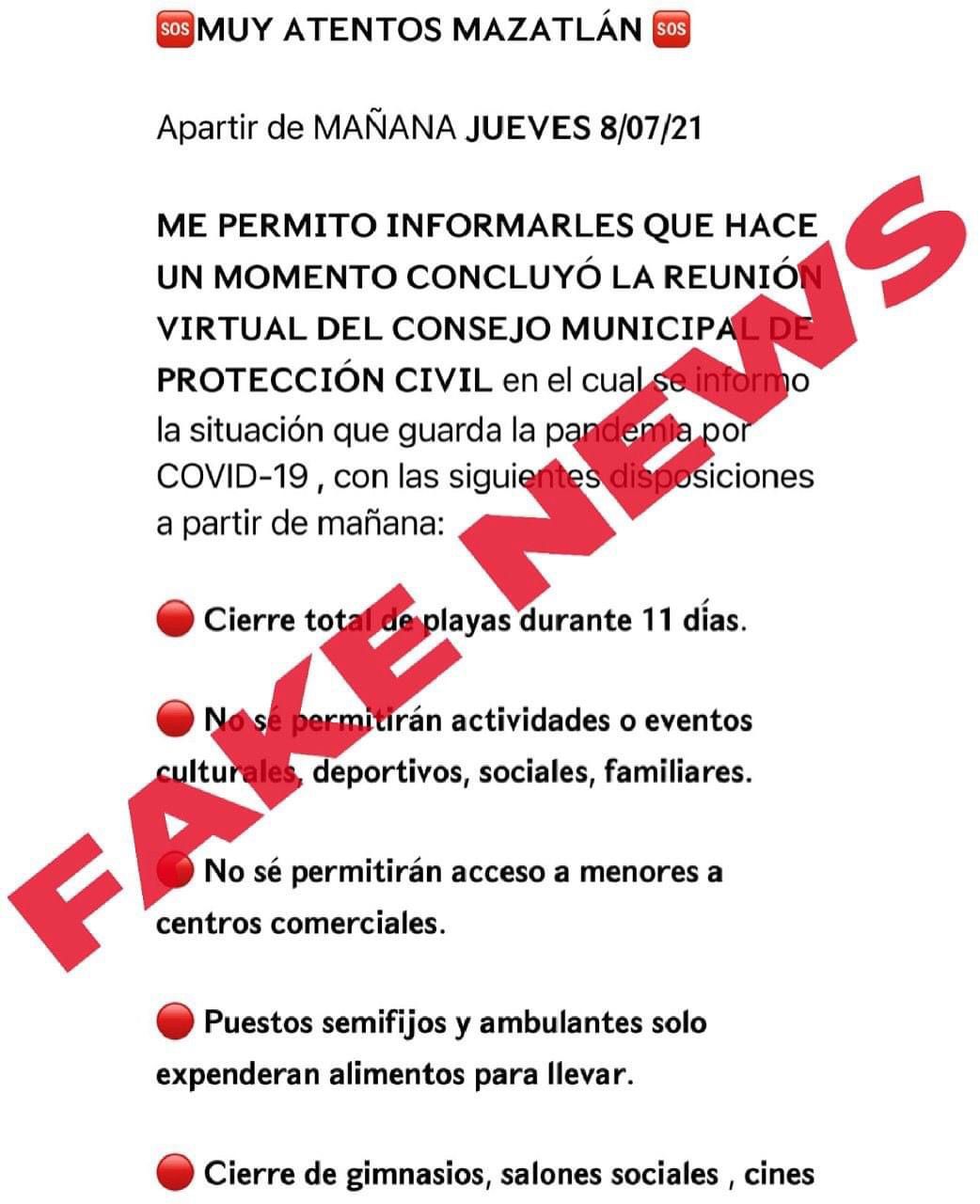 Vega Meza afirmó que como Protección Civil no han dejado de hacer las acciones preventivas y trabajo conjunto y coordinado con los ayuntamientos para venir reforzando los protocolos sanitarios, y ante la circulación de noticias Fake News, llamó a la ciudadanía estar atentos y no hacer caso de ellas.