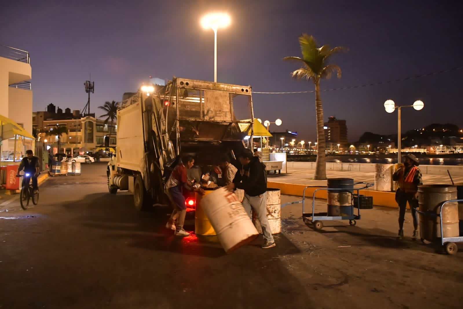 “Estamos esperando lo fuerte para el día miércoles a martes de la semana que entra. Estamos operando regularmente con lo que es lo domiciliario, pero en lo que es malecón, bocacalles de la playa, y desde avenida Cerritos hasta Olas altas y avenidas principales, estamos apoyándonos con carritos, con tambitos, con barrenderos. Tenemos tres rutas más en lo que es el malecón y Zona Dorada en camionetas mini para que no sea tan estorboso meter el camión en el tráfico”, comentó.