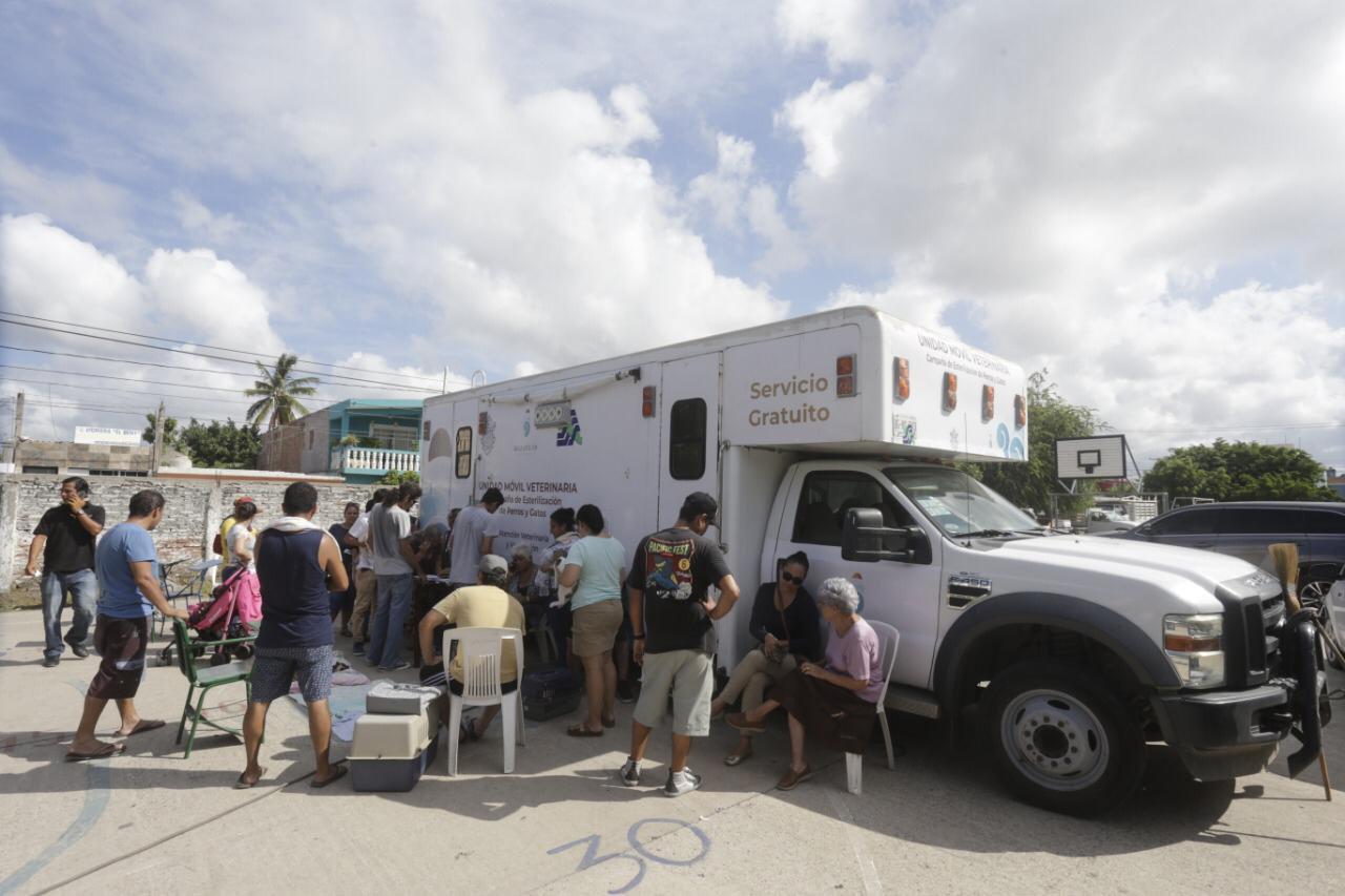 Mazatlán.- La Unidad Veterinaria de la Dirección de Bienestar y Desarrollo Social llegó esta mañana a la Colonia Casas Económicas y estará ahí hasta el viernes 13 de noviembre, ofreciendo sus servicios sin costo para los usuarios de la dicho asentamiento y los alrededores.