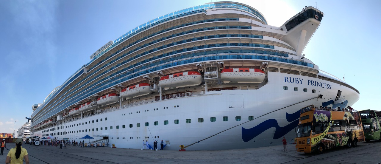 El primero en arribar al muelle de la Administración Portuaria Integral fue el Ruby Princess, a las 06:00 horas aproximadamente, procedente de Cabo San Lucas, con 3,060 pasajeros y 1,188 tripulantes.