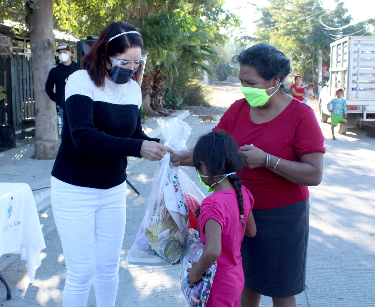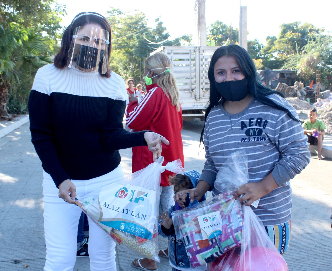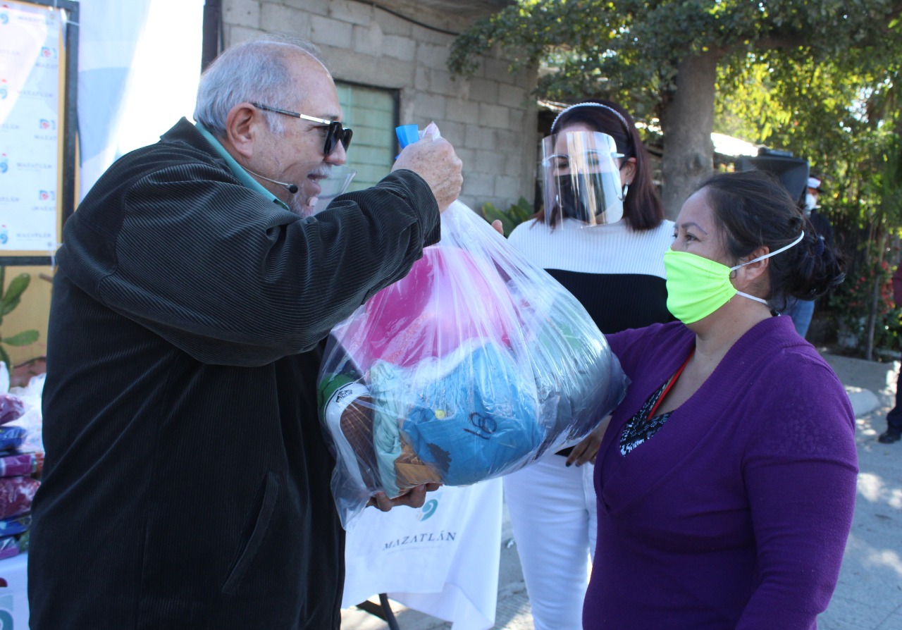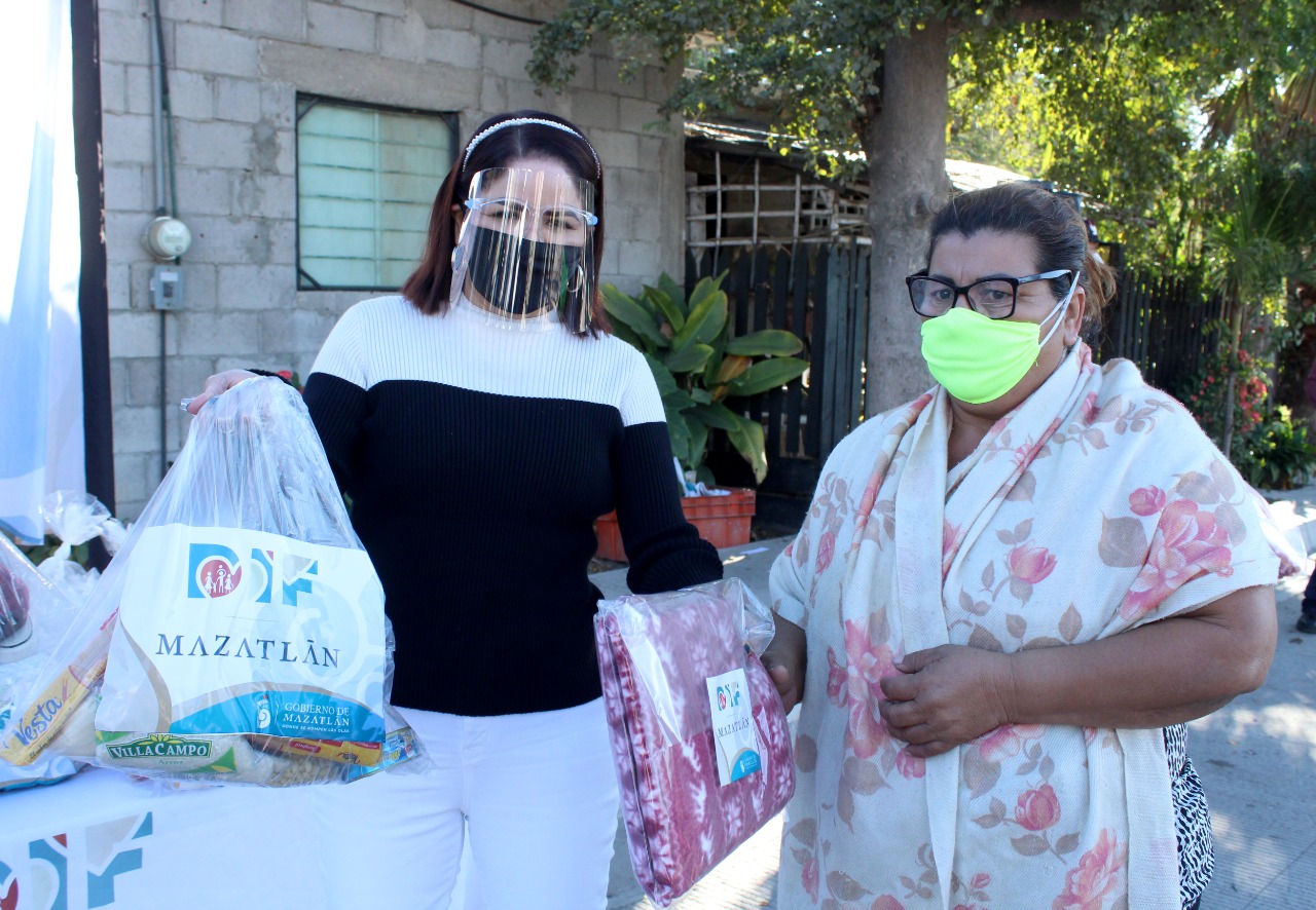 Mazatlán. – Sistema DIF Mazatlán sigue entregando apoyos invernales en colonias de la zona urbana del puerto, en esta ocasión se visitó a los vecinos de la colonia La Sirena para hacer entrega de frazadas, despensas y kits de regalo con productos variados como tenis, ropa, juguetes, mochilas, entre otros.