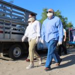 Mazatlán.- Muy temprano salió esta mañana una vez más una Brigada de Amor de DIF Mazatlán, esta vez con rumbo hacia Villa Unión, encabezada por el Alcalde Luis Guillermo Benítez Torres y la Señora Gabriela Peña Chico, Presidenta de DIF Mazatlán, quienes casa por casa entregaron despensas con productos de la canasta básica en la Colonia 7 de abril.