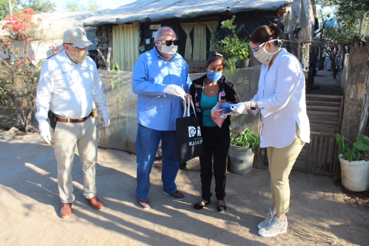 Mazatlán.- Muy temprano salió esta mañana una vez más una Brigada de Amor de DIF Mazatlán, esta vez con rumbo hacia Villa Unión, encabezada por el Alcalde Luis Guillermo Benítez Torres y la Señora Gabriela Peña Chico, Presidenta de DIF Mazatlán, quienes casa por casa entregaron despensas con productos de la canasta básica en la Colonia 7 de abril.
