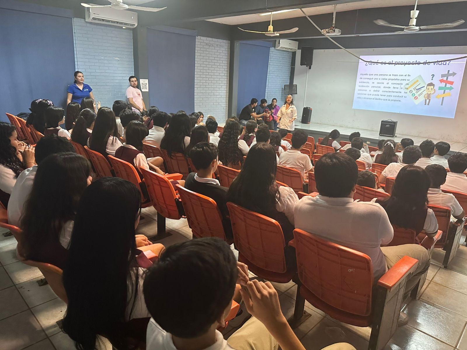 Mazatlán, Sinaloa, 13 de octubre de 2025.- Con el firme propósito de impulsar el desarrollo integral de la juventud mazatleca, el Gobierno Municipal, que encabeza la Presidenta Estrella Palacios Domínguez, a través del Instituto Municipal de la Juventud (IMJU), continúa llevando a las y los estudiantes de nivel secundaria programas enfocados en la prevención, motivación y empoderamiento.