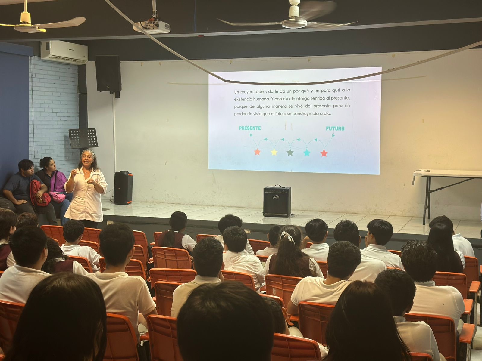 La Directora del IMJU, Arantxa Fernanda Ahumada Rosas, destacó la importancia de acercar estas pláticas a las y los adolescentes, abordando temas fundamentales como la salud mental, el autoconocimiento y la definición de un proyecto de vida, herramientas clave para fortalecer su bienestar emocional y su toma de decisiones. La Directora reconoció que hay un compromiso con escuchar y orientar a los jóvenes, generando espacios donde se sientan valorados y motivados para construir su futuro.
