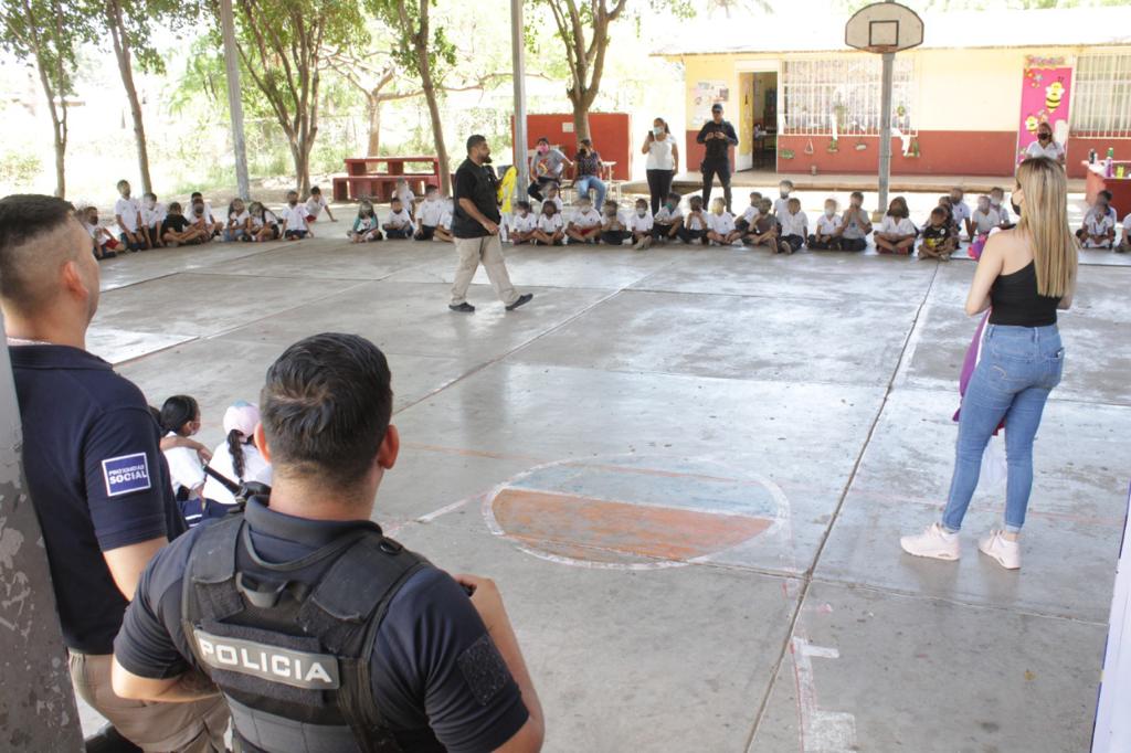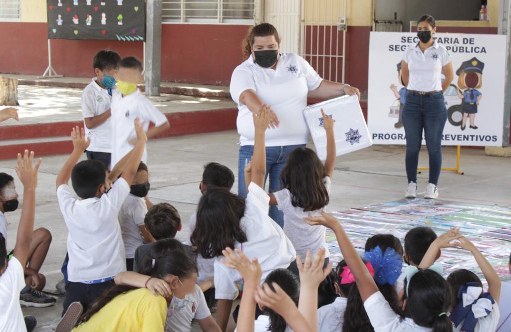 Mazatlán.- A través de la Coordinación de Programas Preventivos, de la Secretaría de Seguridad Pública, el Gobierno Municipal lleva a cabo el programa «Prevención escolar» donde por medio de actividades encaminadas al fortalecimiento de valores y normas sociales, se busca sembrar en los niños, hábitos y acciones para prevenir conductas delictivas a través del juego y teniendo como modelo la figura del Policía.