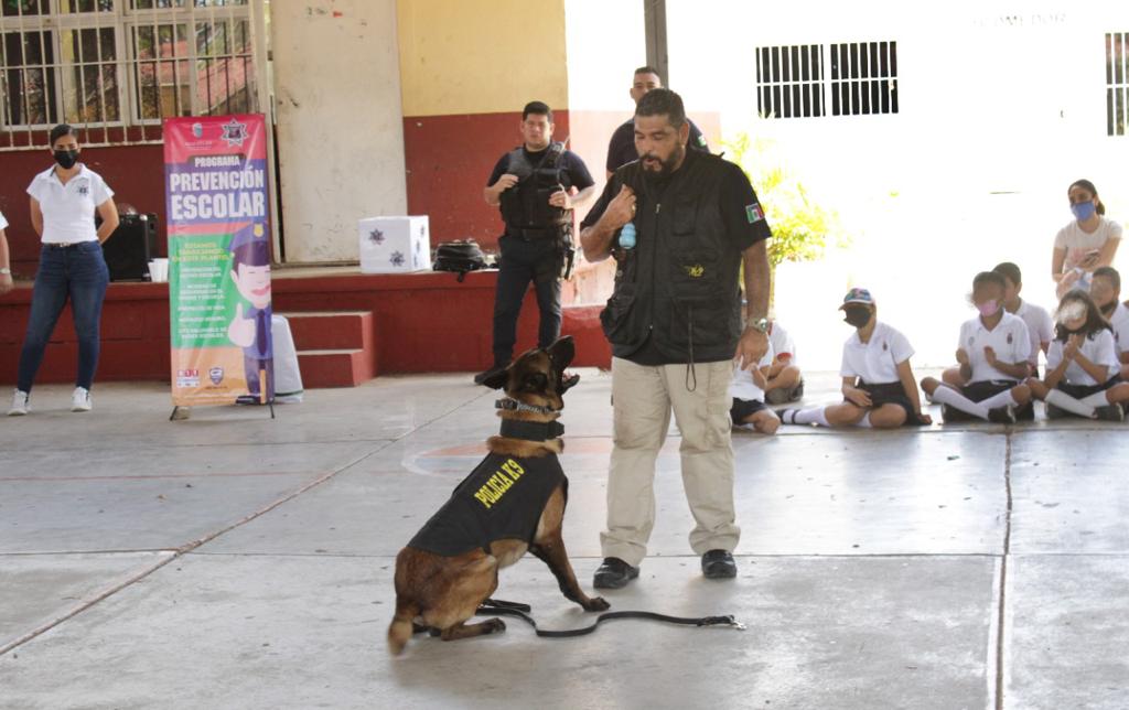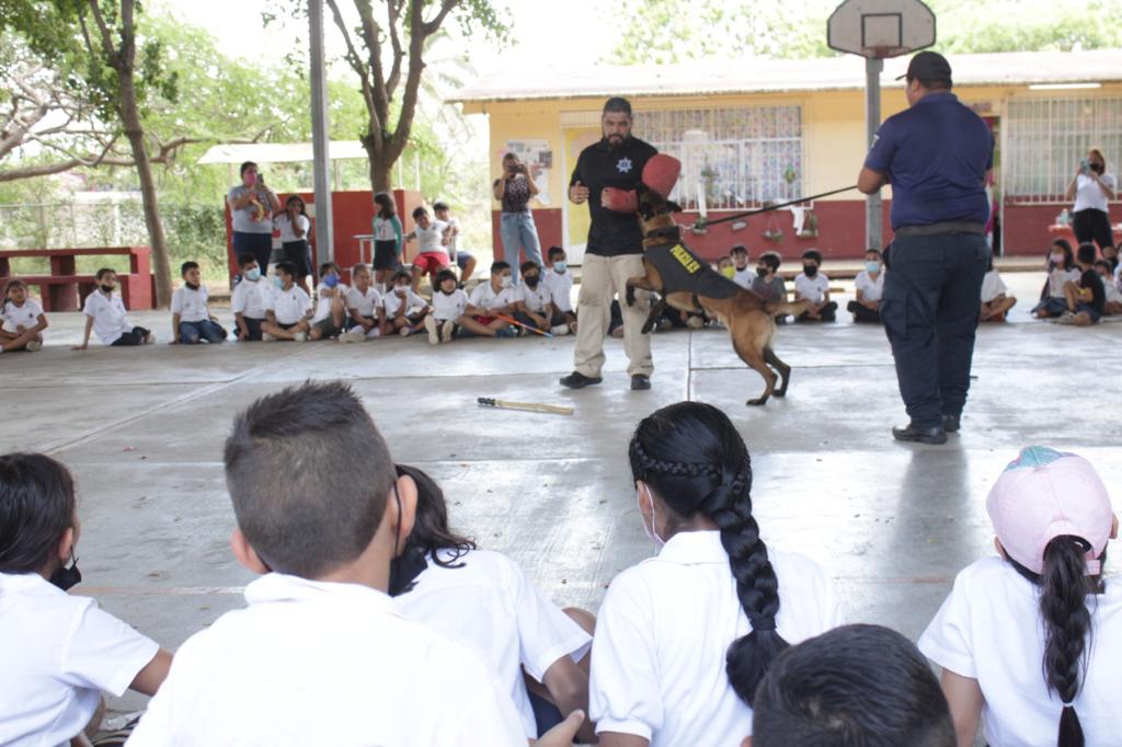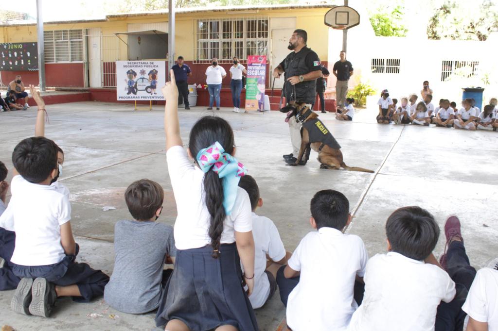 En este encuentro también participó la Unidad Canina de la Secretaría de Seguridad Pública, con el objetivo de que los niños comprendan la importancia del equipo K9 en las actividades preventivas de la Policía Municipal.